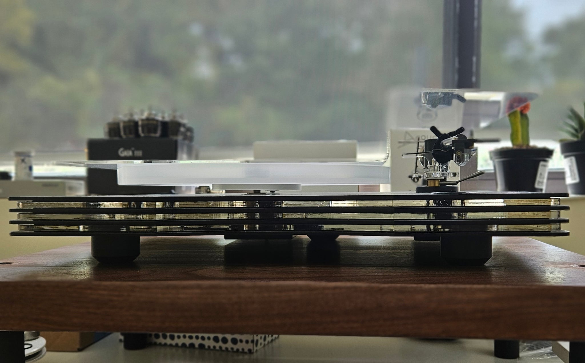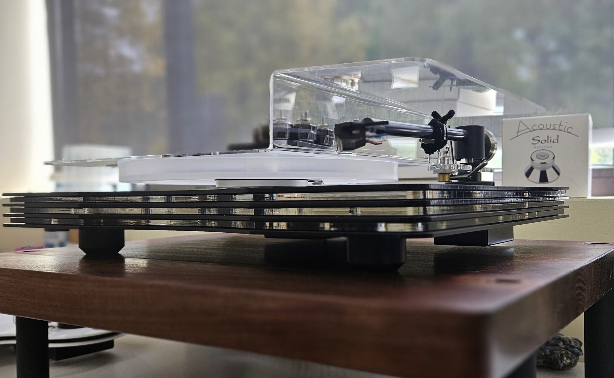 The Edwards Audio TT6 SC turntable’s plinth features an additional “sandwich” to the constrained layer damping technology used in the TT5 turntable. This innovation delivers stunning sound quality for the price.