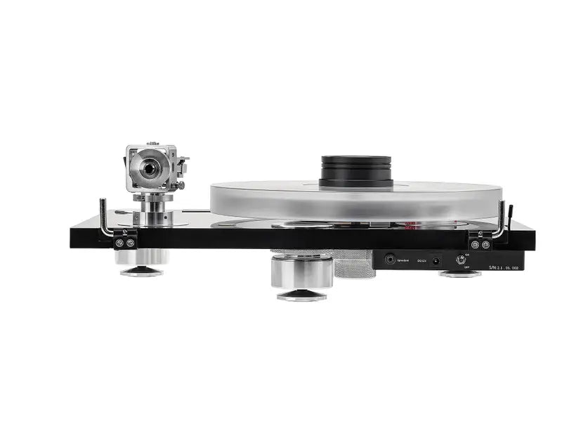 Mechanical isolation plays a major role in how well a turntable performs. Vibrations from the environment — like sound from speakers, footsteps, or room resonance — can travel into the turntable and affect the connection between the stylus and the groove. The Takumi level 2.1DC addresses this with a three-point support system. Using three feet instead of four ensures perfect stability — even on uneven surfaces. Three points always define a flat plane, so the base won’t rock or twist. That stability helps the platter, bearing, and tonearm function exactly as designed.