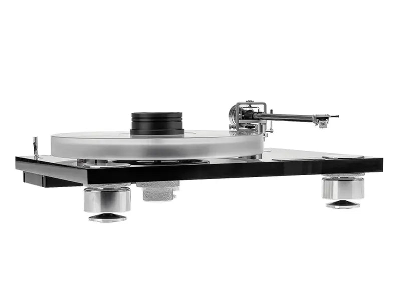 The tonearm uses a full cardanic bearing system, with preloaded radial bearings for near-zero play and extremely low friction. This allows the cartridge to move freely, even with demanding pressings or subtle groove modulations.