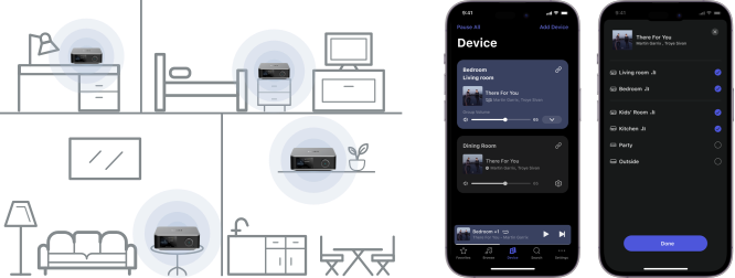 Effortlessly create a unified sound system across your home using the WiiM Ultra with existing Amazon Echo, Google Home, and WiiM devices. Easily manage music streaming throughout your space with the intuitive WiiM Home App—control volume, synchronize speakers, save your favorite tunes, set alarms, and customize settings, all from one central hub.